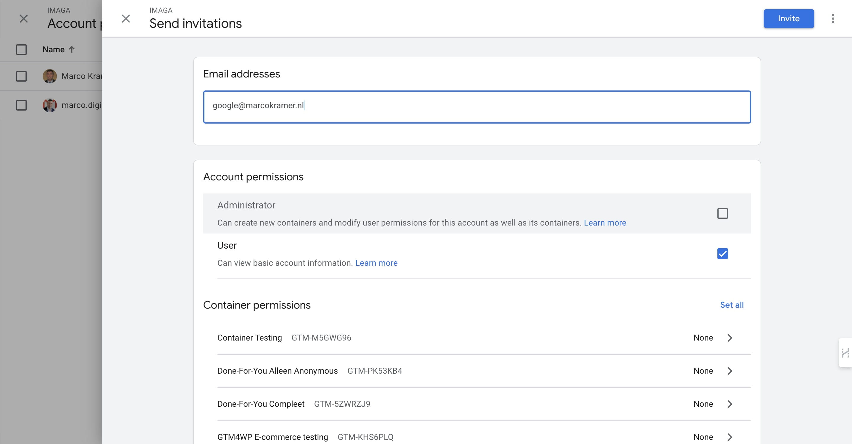 Add the emailadress (The email must be connected to a Google Account. Learn more).